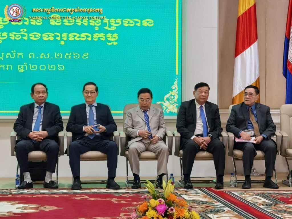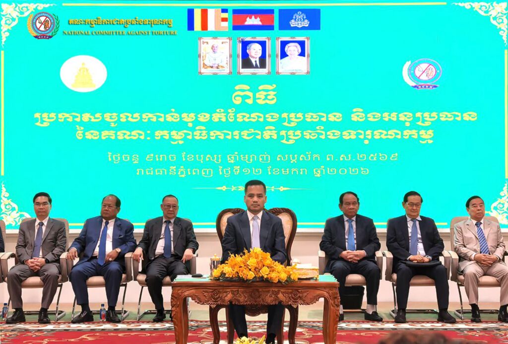 នៅព្រឹកថ្ងៃចន្ទ ៩រោច ខែបុស្ស ឆ្នាំម្សាញ់ សប្តស័ក ពុទ្ធសករាជ ២៥៦៩ ត្រូវនឹងថ្ងៃទី១២ ខែមករា ឆ្នាំ២០២៦ គណៈកម្មាធិការជាតិប្រឆាំងទារុណកម្ម បានរៀបចំពិធី ប្រកាសចូលកាន់មុខតំណែងប្រធាន និងអនុប្រធានគណៈកម្មាធិការជាតិប្រឆាំងទារុណកម្ម ក្រោមអធិបតីភាពដ៏ខ្ពង់ខ្ពស់ របស់ ឯកឧត្តម អភិសន្តិបណ្ឌិត ស សុខា ឧបនាយករដ្ឋមន្រ្តី រដ្ឋមន្រ្តីមក្រសួងមហាផ្ទៃ ដោយមានការចូលរួមពី ឯកឧត្តម លោកជំទាវ រដ្ឋលេខាធិការ អនុរដ្ឋលេខាធិការ ឯកឧត្តម អគ្គនាយក អគ្គនាយករង នៃក្រសួងមហាផ្ទៃ ឯកឧត្តមសមាជិក គ.ជ.ប.ទ ការិយាល័យតំណាងឧត្តមស្នងការសហប្រជាជាតិទទទួលបន្ទុកសិទ្ធិមនុស្សប្រចាំកម្ពុជា គណៈកម្មការសិទ្ធិមនុស្សកម្ពុជា ប្រធានលេខាធិការដ្ឋាន និងមន្រីចំណុះលេខាធិការដ្ឋាន គ.ជ.ប.ទ នៅសាលាប្រជុំខេត្តព្រៃវែង ទីស្តីការក្រសួងមហាផ្ទៃ។