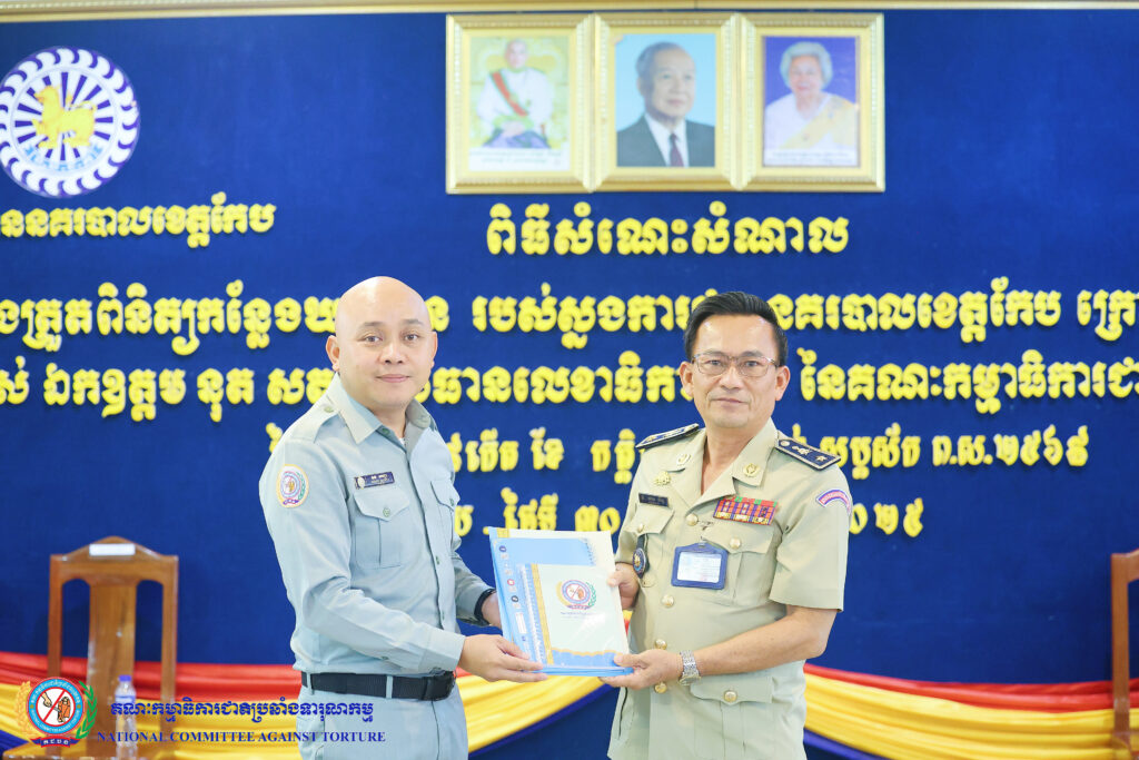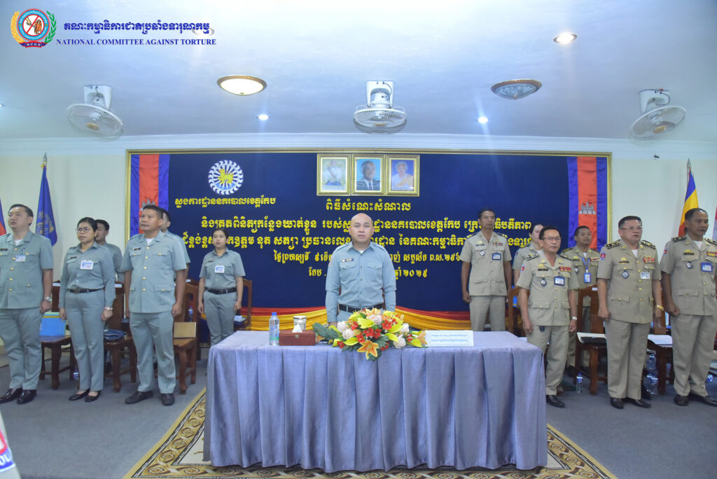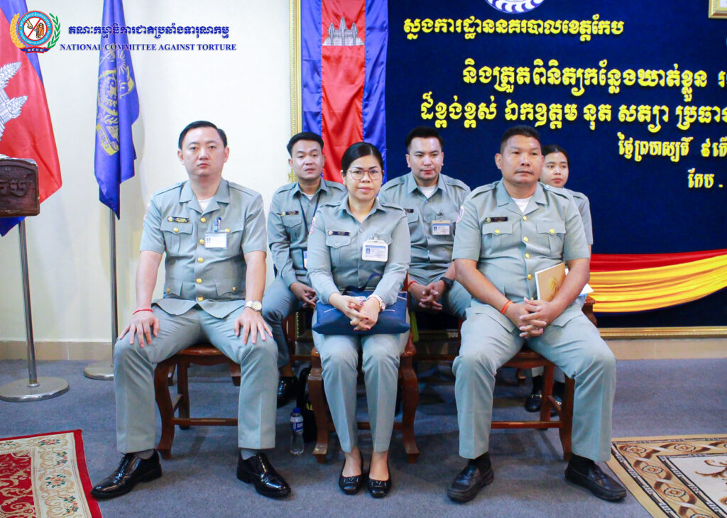 ឯកឧត្តម នុត សត្យា ប្រធានលេខាធិការដ្ឋាន នៃគណៈកម្មាធិការជាតិប្រឆាំងទារុណកម្ម “គ.ជ.ប.ទ” ដោយអនុវត្តន៍តាមការចាត់តាំងដ៏ខ្ពង់ខ្ពស់របស់ ឯកឧត្តមប្រធាន គ.ជ.ប.ទ បានដឹកនាំគណៈប្រតិភូ ដើម្បីបើកកិច្ចត្រួតពិនិត្យកន្លែងដកហូតសេរីភាព នៃស្នងការដ្ឋាននគរបាលខេត្តកែប និងការអនុវត្តច្បាប់លើជនត្រូវបានដកហូតសេរីភាព។